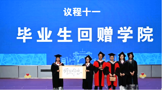 在四年的交大时光,师恩难忘,毕业生们也用自己独特的礼物回赠学院。音表专业学生为学院领导老师们手绘了卡通头像,广告、传播专业的同学则用一句句祝福拼成“师恩难忘”四个字赠送给辛勤工作的老师们,汉语专业的同学们则送上多肉绿植,祝福老师们多福多健康,桃李满天下。音乐表演专业以一首《老师的目光》深情感谢了全体老师,并赠送了“春晖遍泽 硕果满枝”的牌匾。一个鞠躬、一首歌曲、一句感谢、一声辛苦、一个祝福,都包含着浓浓的不舍与感激。