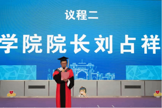 执行院长刘占祥老师进行了致辞。他首先对2024届毕业生顺利完成学业表示祝贺,并提出了三点希望。一是要心怀祖国,兼济天下。为时代担当,为国家担当,为自己的未来担当,展现出我们交大人文青年的担当;二是要奋力拼搏,笃行不怠。在顺境中乘势而为,在逆境中破浪前行;三是要追求真理,勇毅前行,要用自己的胸怀和智慧,怀抱着对知识与真理的追求,在茫茫人海里闯出自己的天地,走好新时代的“人文路”。最后,祝愿师生做爱