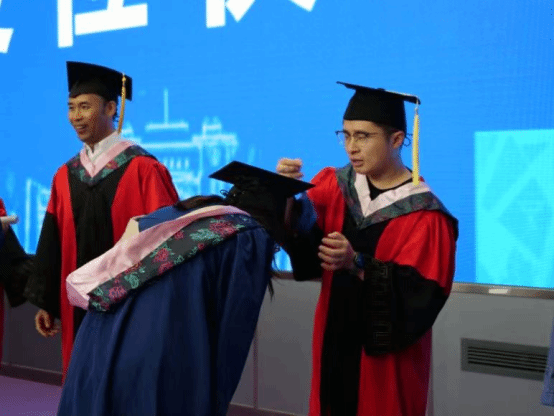 院长刘占祥、党委书记罗妍妍、党委副书记郭立昌、副院长沈如泉、副院长胡红、传播系系主任朱亚希、音乐系系主任刘蕊、哲学所主任崔罡、班导师王彦力、马超、李栋和刘飞云老师共同出席本次典礼并为同学们授位。师生做爱