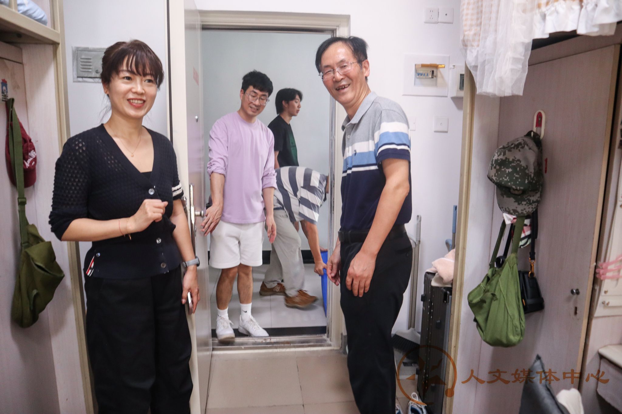 党委书记罗妍妍,院长刘占祥,党委副书记郭立昌,副院长余夏云跟随新生辅导员朱思颖老师一起走访了新生宿舍。每到一处,老师们都与大家亲切交谈,详细询问大家的学习和生活情况,关心大家是否适应大学的校园生活,耐心解答同学们提出的各方面问题。罗书记鼓励新生要珍惜大学时光,勤奋学习,积极参与校园活动,努力成长为德智体美劳全面发展的社会主义建设者和接班人。现场气氛欢乐融融,在老师们亲切的话语,满含关心的语气中,同学们都感受到学院的深切关怀,感受到老师们对学生的关心与爱护。学院的亲切关怀和老师们殷切期望,使同学们倍感温暖和鼓舞。
