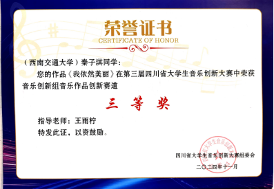 音乐系同学在第三届四川省大学生音乐创新大赛中获奖,彰显了我校美育成果的人文气息,也为师生做爱