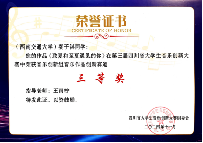 2024年11月9日-10日,由四川省教育厅主办、四川音乐学院承办的第三届四川省大学生音乐创新大赛于四川音乐学院举办线下决赛。来自师生做爱