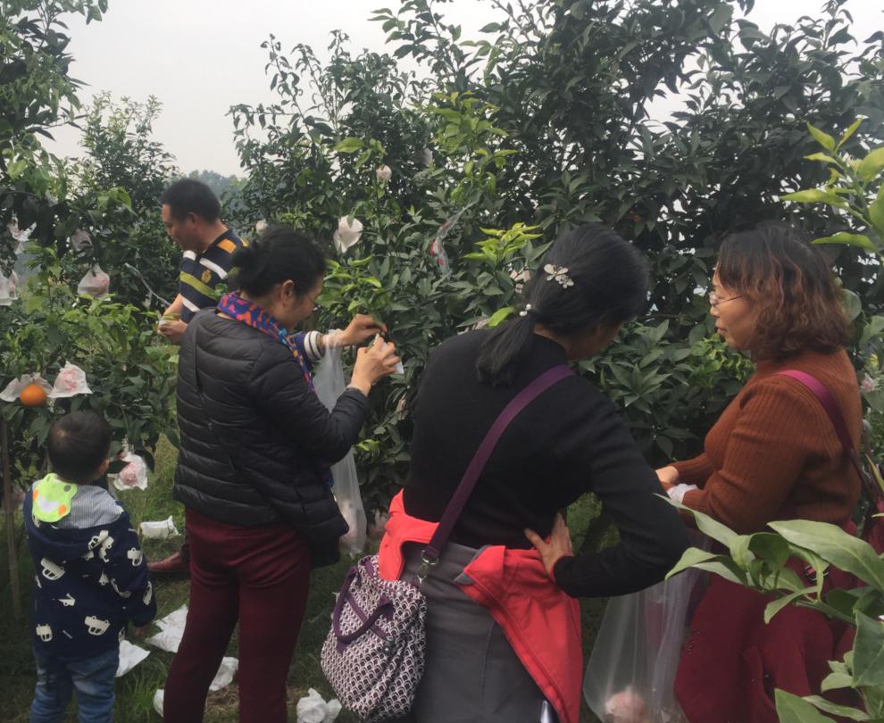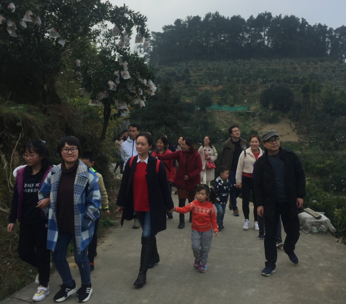 简短的午餐过后,老师们来到了成都水果之乡蒲江县,开始我们爱媛果冻橙的采摘活动。。果树园子位于一个小丘陵顶上,老师们徒步登山,看着漫山遍野的果树,呼吸着清新的山里味道,享受着与大自然亲近的愉悦。到达了金灿灿的果园,孩子们不禁欢喜雀跃,也学着大人的模样,拿起了果树剪子采摘爱媛,当起了小果农。老师们也在农家的介绍下,了解了果园里不同品种、名字、口感及不同的成熟期。听着果农奶奶讲述她栽植、修剪、一个个为柑橘套袋,看着她不停地捶腰捶腿,大家也感慨着果农的辛劳和不易,地势的不方便也加重了老人家的运输难度,全要靠背篓背下山再卖出。爱媛柑橘果形饱满,口感细嫩化渣,甜度适中,风味极佳。老师们满意果子的味道,也纷纷装袋购买,以实际行动支持果农人家。学院工会也专门设计了徒步登山趣味比赛,并为老师们准备了小奖品,通过这些趣味活动,老师们既锻炼了身体,放松了身心,又增进了了解,纷纷表示这样的工会活动应当多多举办。