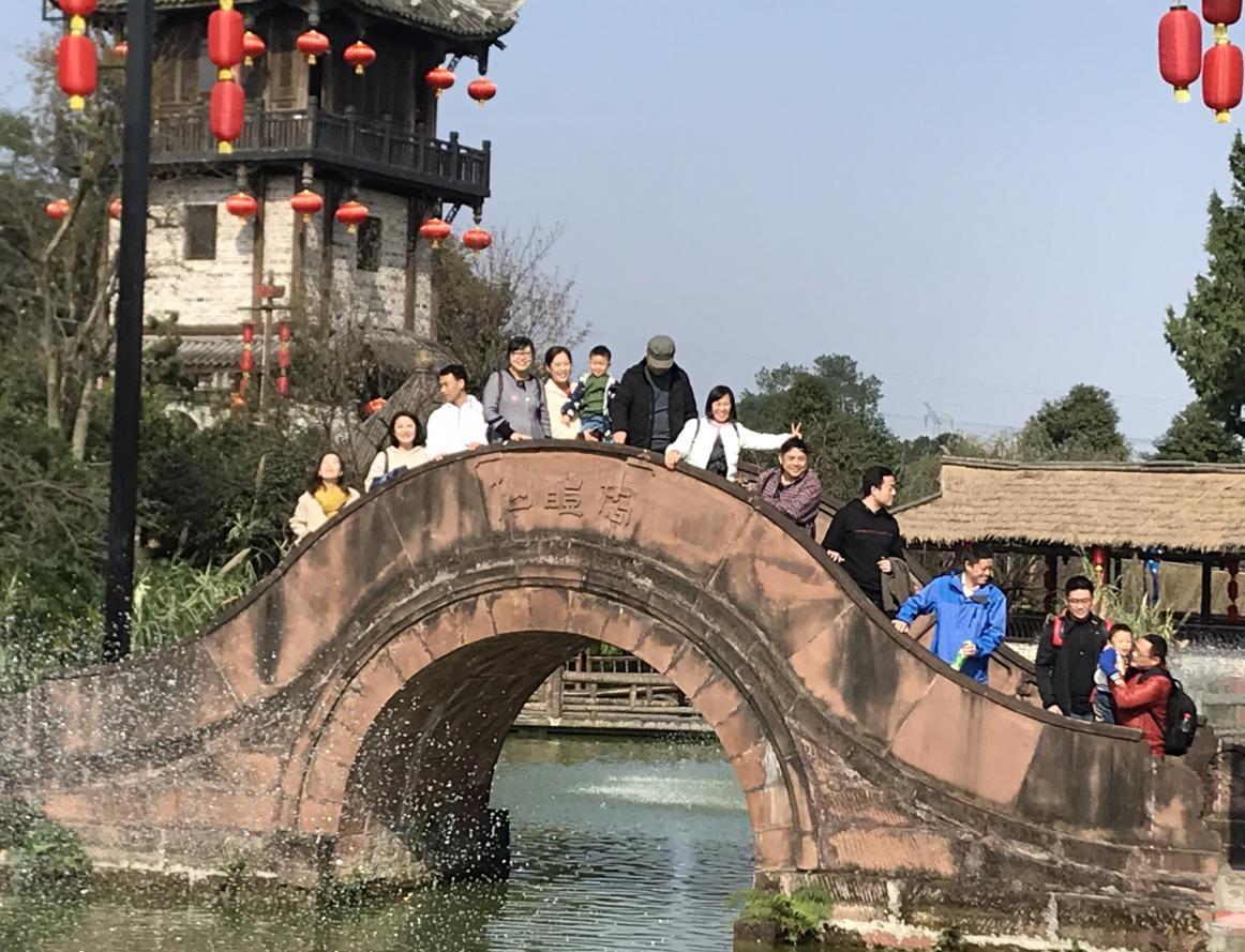 老师们先到达了位于邛崃的大梁酒庄农家乐。老师们了解了邛崃自大梁以来的酿酒历史及变迁,见识了大梁烧坊与酿酒师傅一道按照百年古法酿酒的全过程,参观了古香古色的老式宅院,也游览了庄内湖水萦绕,厅榭精美,花木繁茂,亭榭小筑的美景。加之天公作美,阳光明媚,老师们频频驻足拍照,传播系影视方向退休教师高力教授更是热心为老师们服务,传授摄影秘诀,如何运用光影,如何进行构图,果然,老师们对高老师的指点或者拍照效果赞不绝口,果然是编剧导演的大片水准。