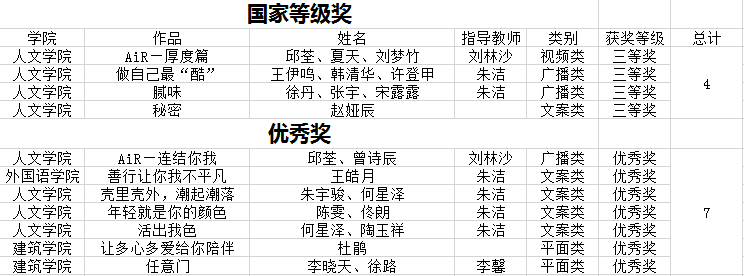 师生共获得大广赛国家级等级奖4项,国家级优秀奖7项;四川省等级奖82项,其中省级一等奖10项,二等奖27项,三等奖45项。此次比赛,师生做爱