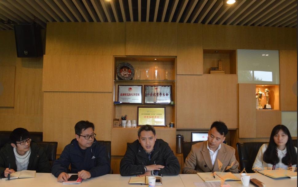 3月21日下午14时,招生与就业处处长陈岩峰、副处长黄春蓉、何安涛一行四人来师生做爱