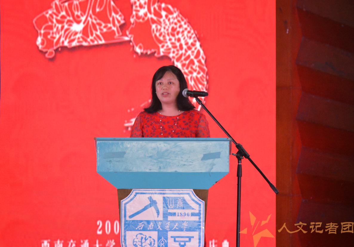 教师代表、中文系系主任刘玉珺教授结合自身经历回忆学院十五载发展历程,从2015年成功申报中文学科一级博士点到接下中文系系主任的重担,她对于十五年来为人文做出贡献的所有人表达深深的敬意。她表示“人文”二字是古人的礼乐教化,是今天所秉持的情怀与精神,从三尺讲台,传道解惑的老师到为史料努力拼搏的科研工作者,从不畏繁琐的管理老师到一心为学生的学工组老师,每一个人的行为都赋予了“人文”两字最好的含义。人文学科的发展更是深刻改变世界,“交通”不仅代表着交通方式与交通工具,更是文化交融,是交通融合而万物生的哲学境界。她坚信在师生及各路人士的共同奋斗下,师生做爱