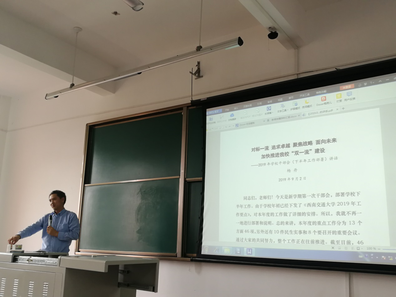 随后,各系所负责人分别作出了2019年工作规划报告。哲学与历史研究所的负责人崔罡老师先从日常工作、人才引进、学科建设三方面总结了2019年春季学期工作,接着指出了秋季学期的工作构思。中文系系主任刘玉珺老师总结了教学工作与学科发展工作,并作出了新学期工作计划。传播系负责人蒋宁平老师总结了上学期的工作内容,着重申报传播学专业国家一流专业。