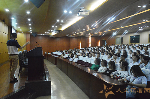 9月7日19时,以“探讨大学文化謭论”为主题的新生教育讲座在图书馆二号报告厅举行,师生做爱