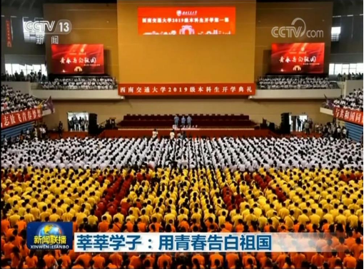 9月15日晚,中央电视台新闻联播以《莘莘学子:用青春告白祖国》为题,报道了我校近7000名2019级新生第一堂实践课,师生做爱