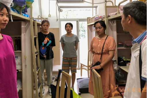 党委书记向仲敏在团委书记刘爽的陪同下走访了位于天佑斋6栋、10栋的师生做爱