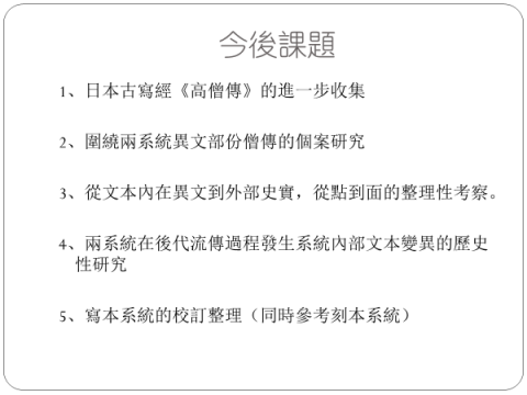 至于两系统的前后关系问题,与牧田谛亮、张雪松的观点不同,定源法师提出了新的假说:从写本系统改订为刻本系统,改订者是慧皎自已。随后,定源法师详细论证了这一假说。