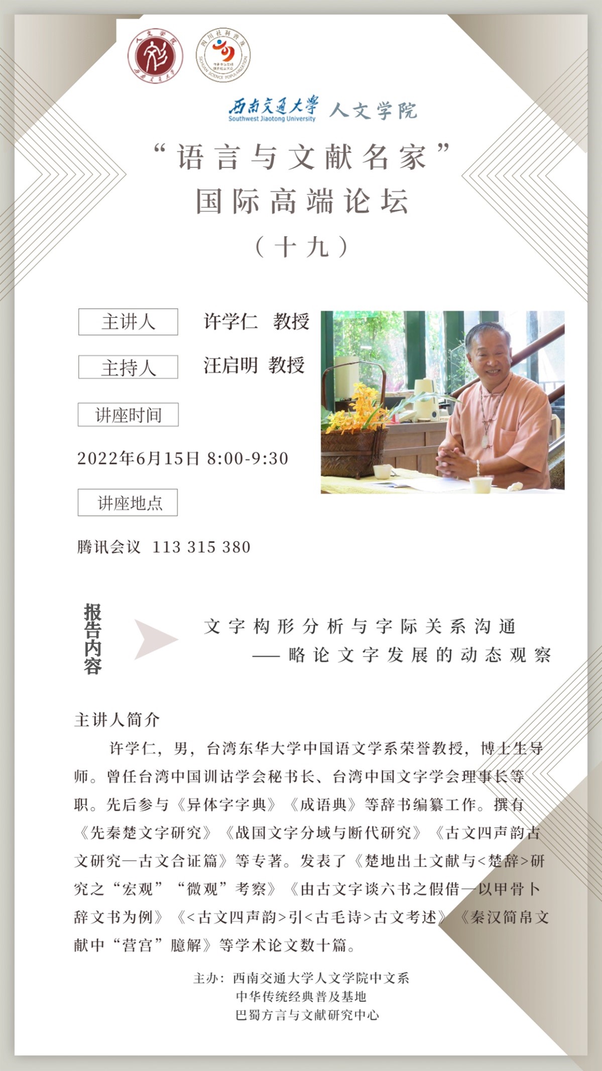许学仁,男,台湾东华大学中国语文学系荣誉教授,博士生导师。曾任台湾中国训诂学会秘书长、台湾中国文字学会理事长等职。先后参与《异体字字典》《成语典》等辞书编纂工作。撰有《先秦楚文字研究》《战国文字分域与断代研究》《古文四声韵古文研究─古文合证篇》等专著。发表了《楚地出土文献与<楚辞>研究之“宏观”“微观”考察》《由古文字谈六书之假借─以甲骨卜辞文书为例》《<古文四声韵>引<古毛诗>古文考述》《秦汉简帛文献中“营宫”臆解》等学术论文数十篇。