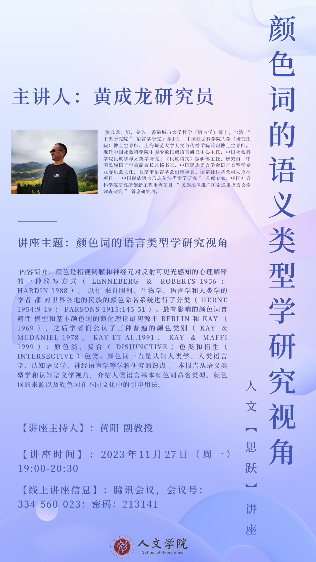 【线上讲座信息】:腾讯会议,会议号:334-560-023;密码:213141