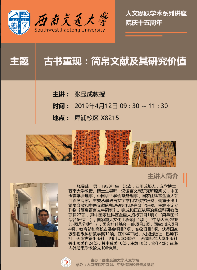 讲座主题:古书重现:简帛文献及其研究价值
