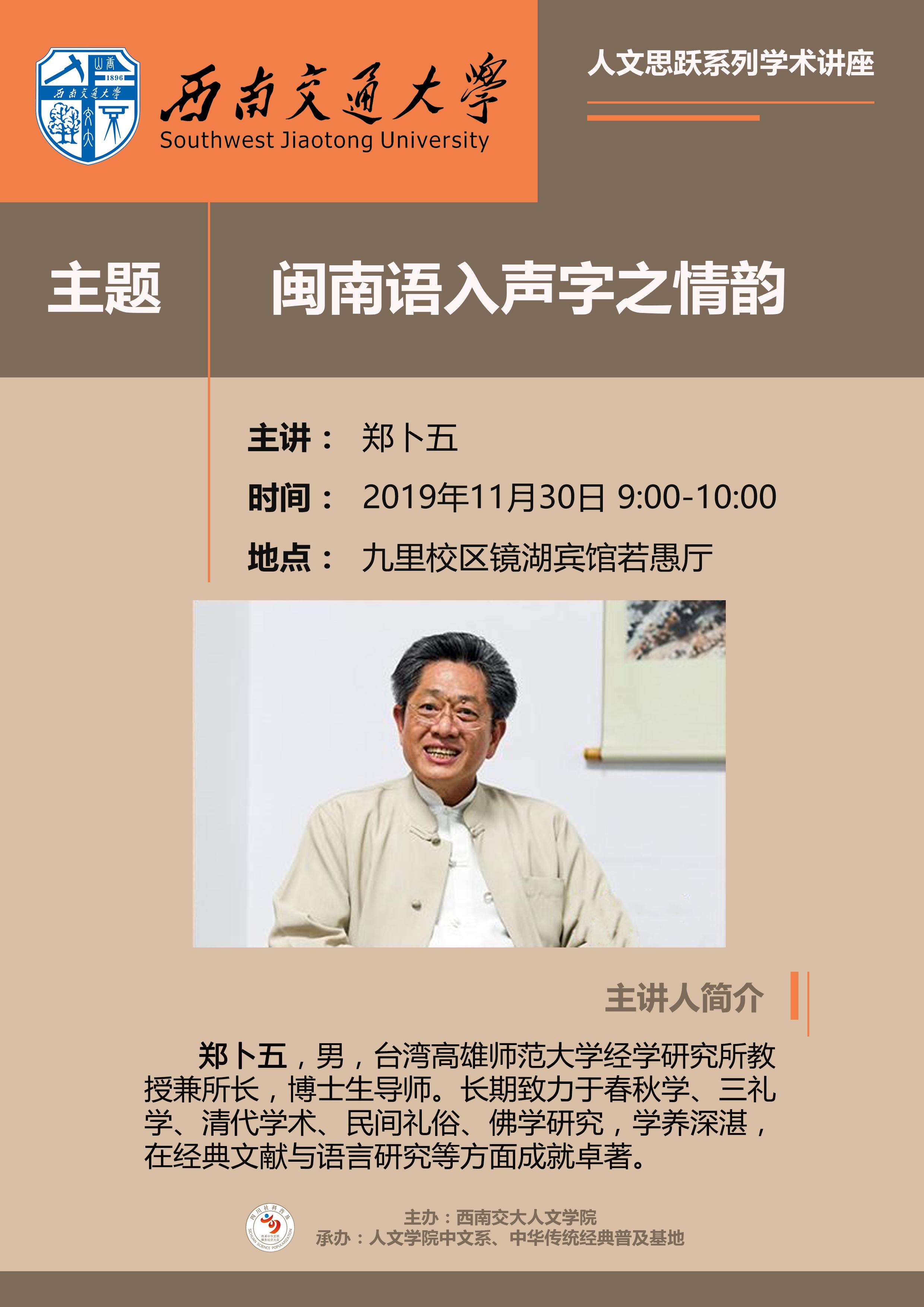 郑卜五,高雄师范大学经学研究所教授兼所长,博士生导师。长期致力于春秋学、三礼学、清代学术、民间礼俗、佛学研究,学养深湛,在经典文献与语言研究等方面成就卓著。