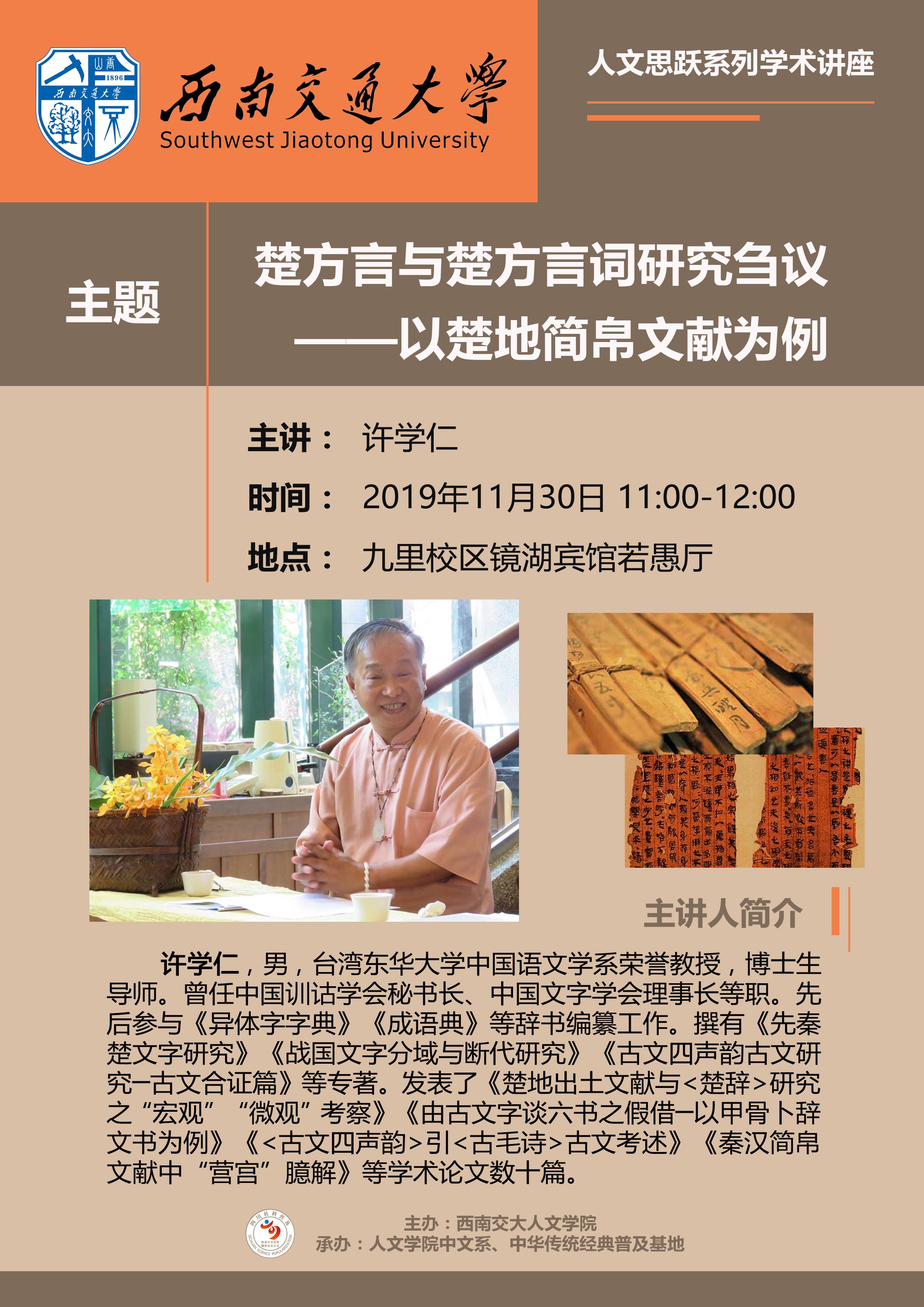 【讲座题目】楚方言与楚方言词研究刍议——以楚地简帛文献为例