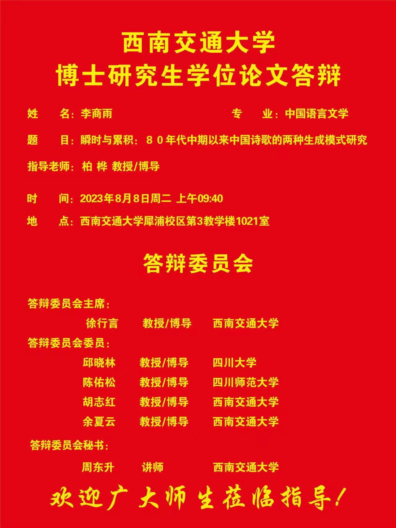 【博士答辩】师生做爱 博士研究生学位论文答辩海报