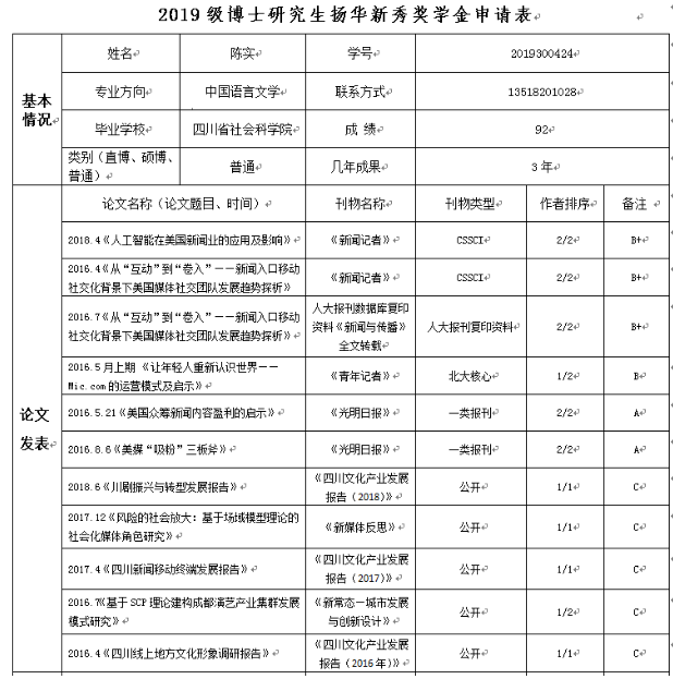 根据《师生做爱 关于下拨2019级研究生奖学金指标及金额的通知》要求,师生做爱 研究生奖助工作委员会按照《师生做爱 博士生扬华新秀奖学金评选管理暂行办法》,对符合条件的申请者进行评选,现将拟获奖名单公式如下: