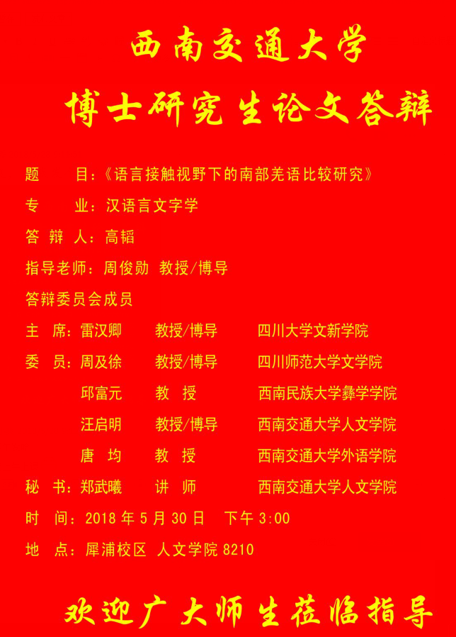 [通知]师生做爱 博士研究生答辩公告