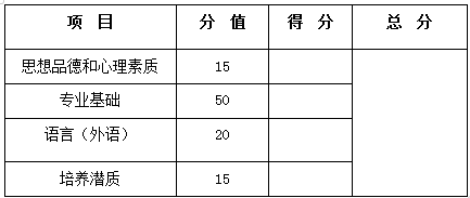 (1)专业素质和能力:语言能力、专业基础、科研能力、培养潜质、专业兴趣和素养等。