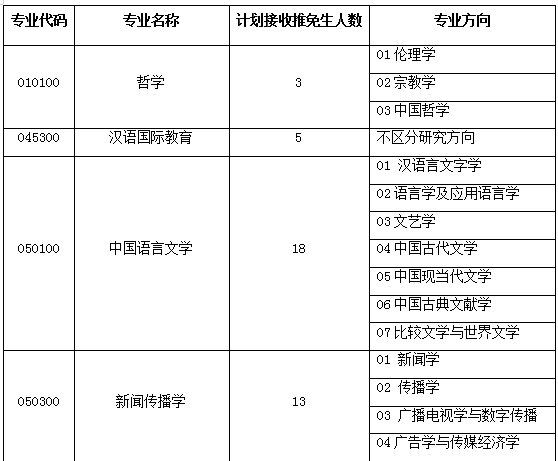 二、接收专业、人数(接收推免生的人数可根据实际情况进行调整)